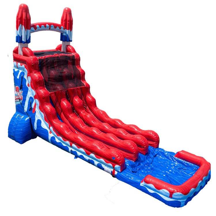 Cool off with the Red, White & Cool 22’ Water Slide — inspired by the classic red, white, and blue frozen summer treat everyone grew up loving. With its tall sliding lane, bright nostalgic color pattern, and refreshing splash landing, this slide delivers fast, refreshing fun that’s perfect for hot summer birthdays, backyard parties, school celebrations, and any event where you want big visual impact and nonstop cooling excitement.
